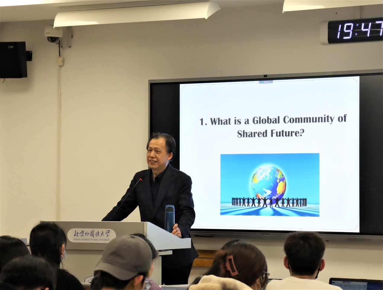 3月30日,买球官方网站党委常委、副校长孙有中教授在逸夫楼为英语专业和翻译学专业2019级本科生讲授了题为A Global Community of Shared Future: A Global Perspective的形势与政策课。本次形势与政策课为英文授课。
