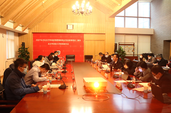 在习近平总书记发表重要讲话三周年之际,买球官方网站召开贯彻落实思想政治理论课教师座谈会精神研讨会。党委副书记苏大鹏出席会议,会议由买球官方网站院长韩强主持。