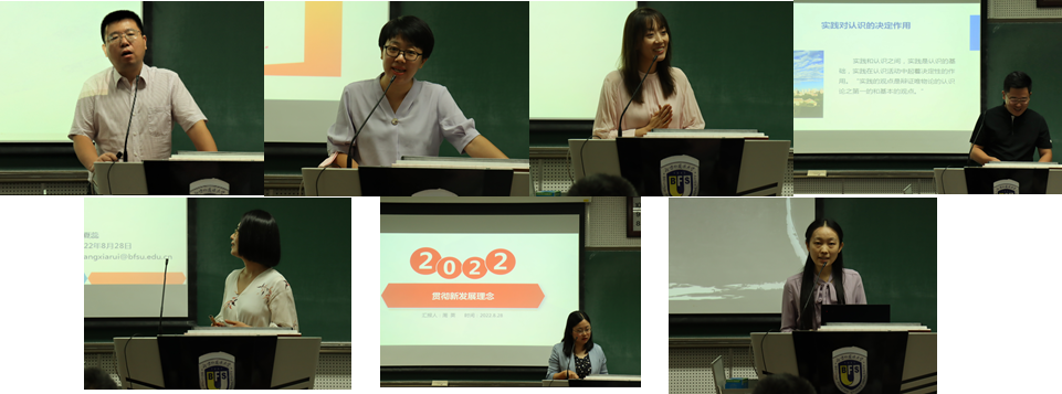 比赛开始后,各青年教师围绕《毛泽东思想和中国特色社会主义理论体系概论》《习近平新时代中国特色社会主义思想概论》《马克思主义基本原理》《思想道德与法治》《形势与政策》等课程的重难点问题,在精心制作的课件基础上,进行了精彩的教学展示。参赛选手在教学内容上注重理论联系实际,教学过程安排合理,教学方法的运用灵活恰当,充分展现了北外马院思政课教师扎实的理论功底、科学的教学理念。评委们从选题、教学设计、教学方法等方面分别进行了详细点评,并提出了一些有益建议。