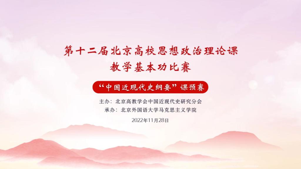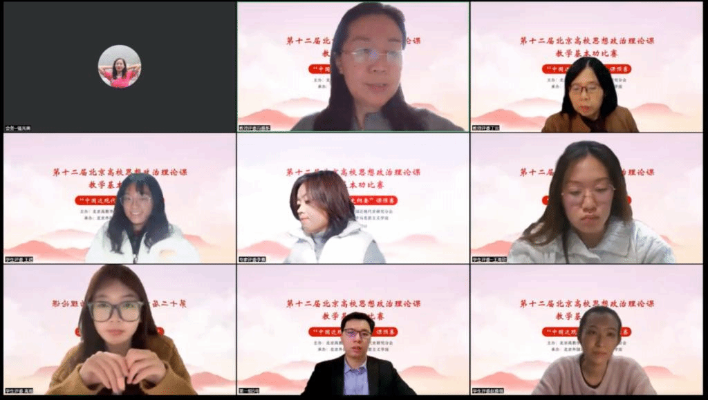 为深入学习宣传贯彻党的二十大精神,充分发挥思政课在推动党的二十大精神“三进”中的主渠道作用,经过紧张周密的筹备,由北京高教学会中国近现代史研究会主办、买球官网承办的第十二届北京高校思想政治理论课教学基本功比赛“中国近现代史纲要”课预赛于11月28日在线上举行。来自北京大学、清华大学、中国人民大学、买球官方网站等高校的33名青年思政课教师参加了比赛。