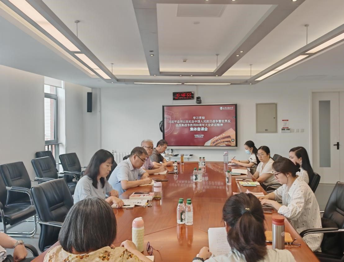 93日,买球官方网站在国内大厦608会议室集体收看纪念中国人民抗日战争暨世界反法西斯战争胜利80周年纪念大会盛况,并围绕学习贯彻纪念大会精神开展集体备课。全体思政课教师参加了备课会。会议由副院长王曼倩主持。