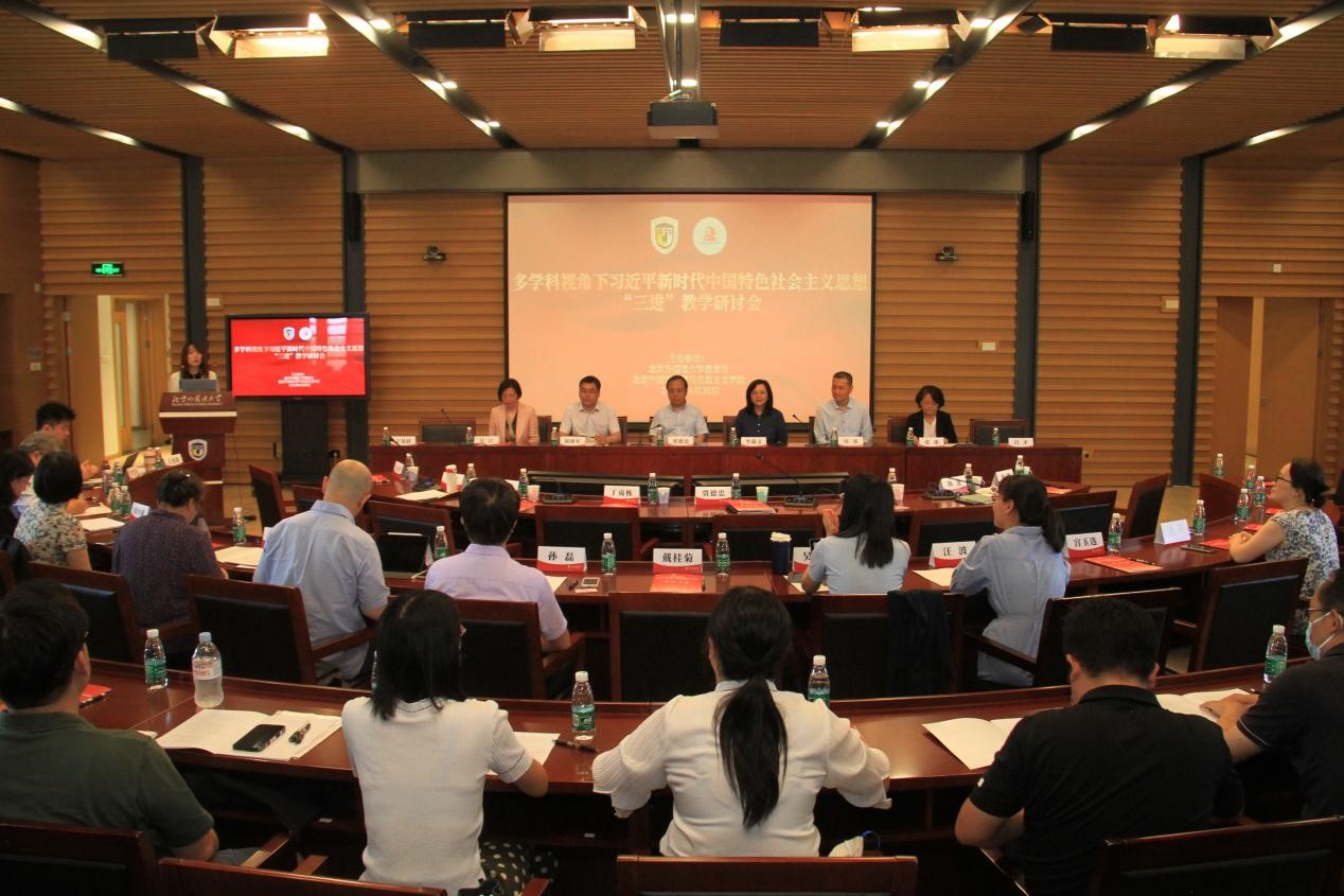 为深入推进习近平新时代中国特色社会主义思想进教材、进课堂、进头脑,6月30日上午,买球官方网站教务处与买球官方网站联合主办了“多学科视角下习近平新时代中国特色社会主义思想‘三进’教学研讨会”。买球官方网站党委常委、副校长贾德忠、北京市委教育工委宣教处副处长丁贞栋、来自买球官方网站教务处、买球官方网站、英语学院、德语学院、国际关系学院等多学科师生代表80余人参加研讨会,会议由买球官方网站副院长王曼倩主持。