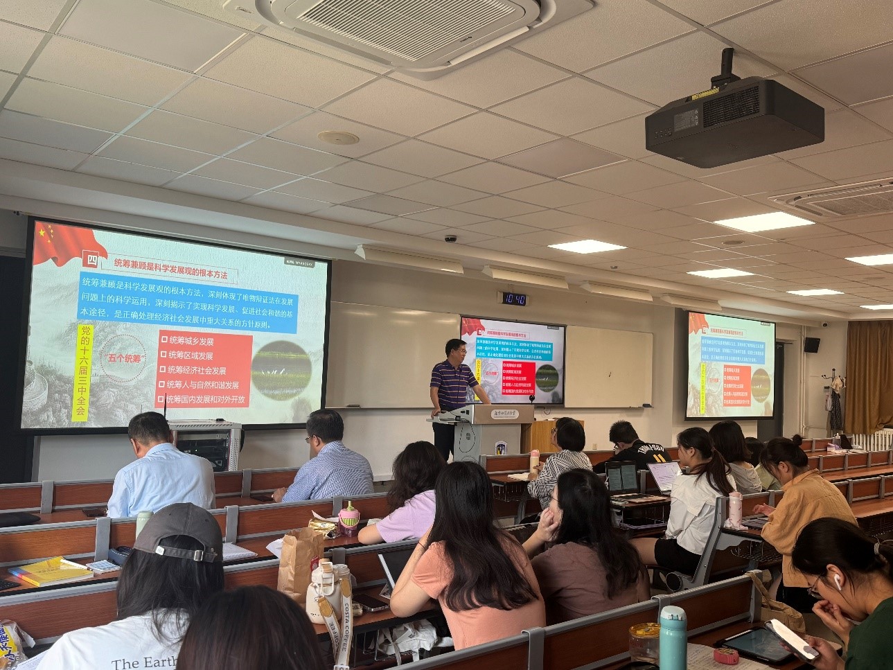 6月4日,为贯彻习近平总书记对学校思政课建设作出的重要指示精神,进一步提升思政课教学水平,买球官方网站在逸夫楼410教室举行了有组织教学暨集体听课、集体评课活动。校党委常委、副校长贾德忠、买球官方网站院长韩强、副院长王曼倩、“毛泽东思想和中国特色社会主义理论体系概论”教研室全体教师参加活动。