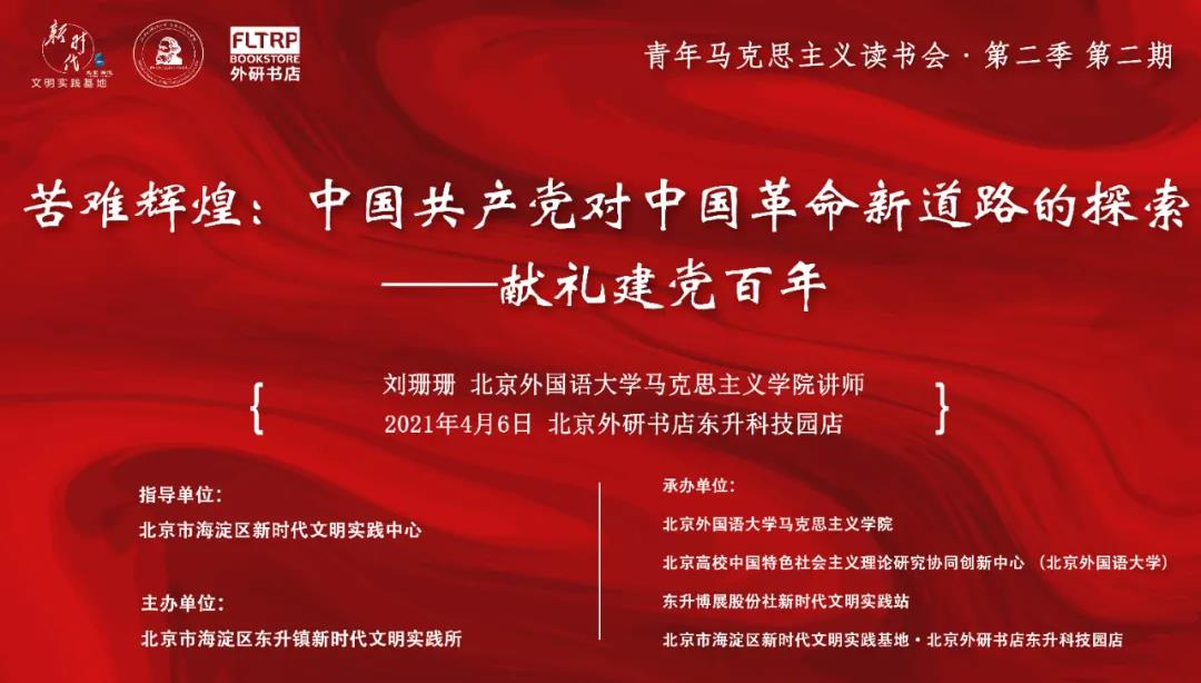 近日,北京外研书店“青年马克思主义读书会”邀请买球官网刘珊珊老师以“苦难辉煌:中国共产党对中国革命新道路的探索——献礼建党百年”为题进行了一次主题分享活动。