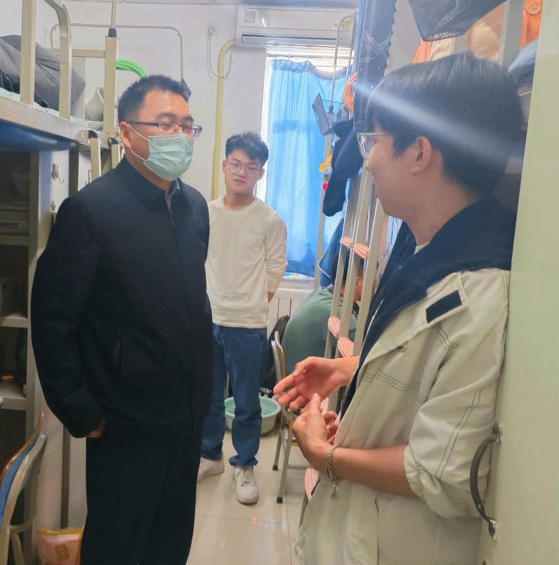 近日,为加强宿舍安全管理,排查宿舍安全隐患,营造良好的学习生活环境,买球官方网站党总支书记祝和军老师、学生辅导员刘珊珊老师、办公室孟蔓老师带队深入学生宿舍走访慰问,了解学生宿舍基础设施、环境卫生、消防安全情况,并与同学们亲切交流。