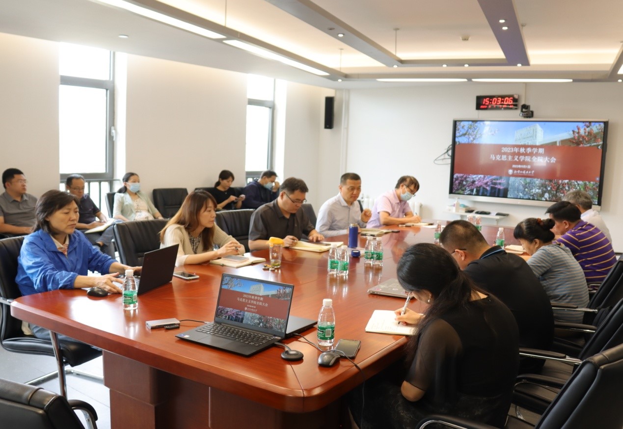 院长韩强传达买球官方网站2023年秋季学期工作部署会会议精神,布置新学期学院工作。着重强调要做好思政课教学、学科建设、教学管理等方面的工作。