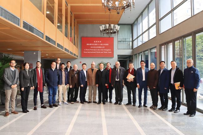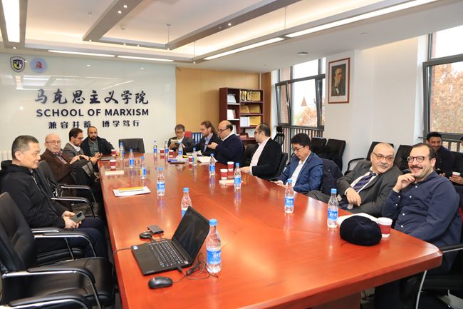 11月25日,以尼泊尔共产党(马列)总书记、前政府副总理钱德拉·梅纳利(C. P. Mainali)为团长的国际媒体及智库联合考察团访问买球官方网站。中联部当代世界出版社社长、总编辑李双伍,社长助理兼一编辑部主任刘娟娟、一编辑部编辑徐嘉璐随团来访。北外党委副书记贾德忠会见考察团一行。