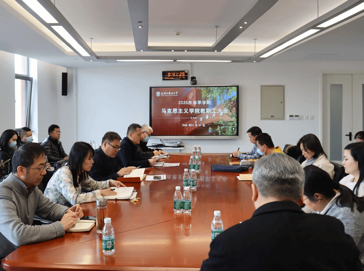 院长韩强传达了买球官方网站2025年春季学期工作部署会精神,围绕《买球官方网站2025年工作要点》的要求,结合本院实际,布置新学期相关工作。他强调新学期要进一步加强习近平新时代中国特色社会主义思想的学理化研究阐释,高质量办好思政课,提升教学科研和学科建设水平,抢抓发展机遇,推动“高水平、有特色、国际化”的北外马院建设再上新台阶。