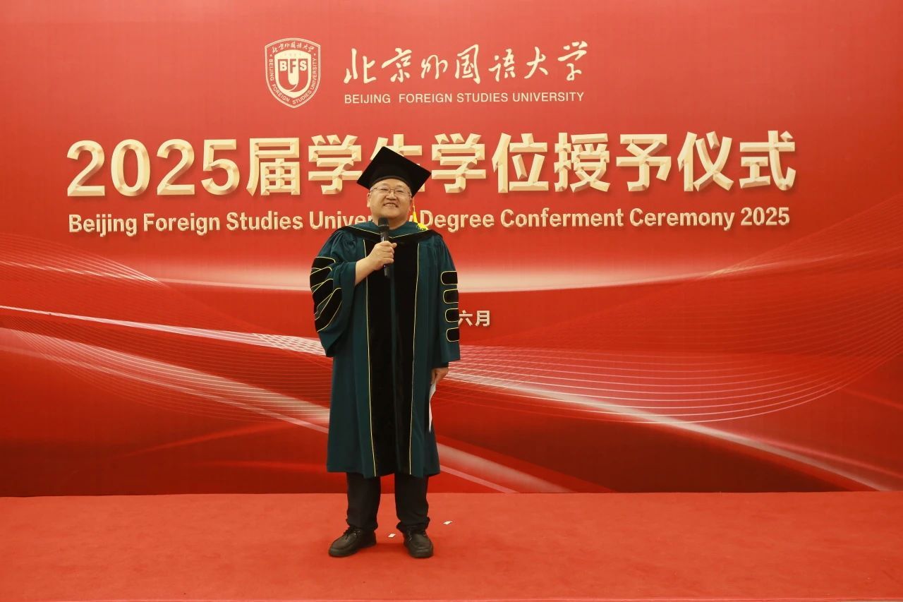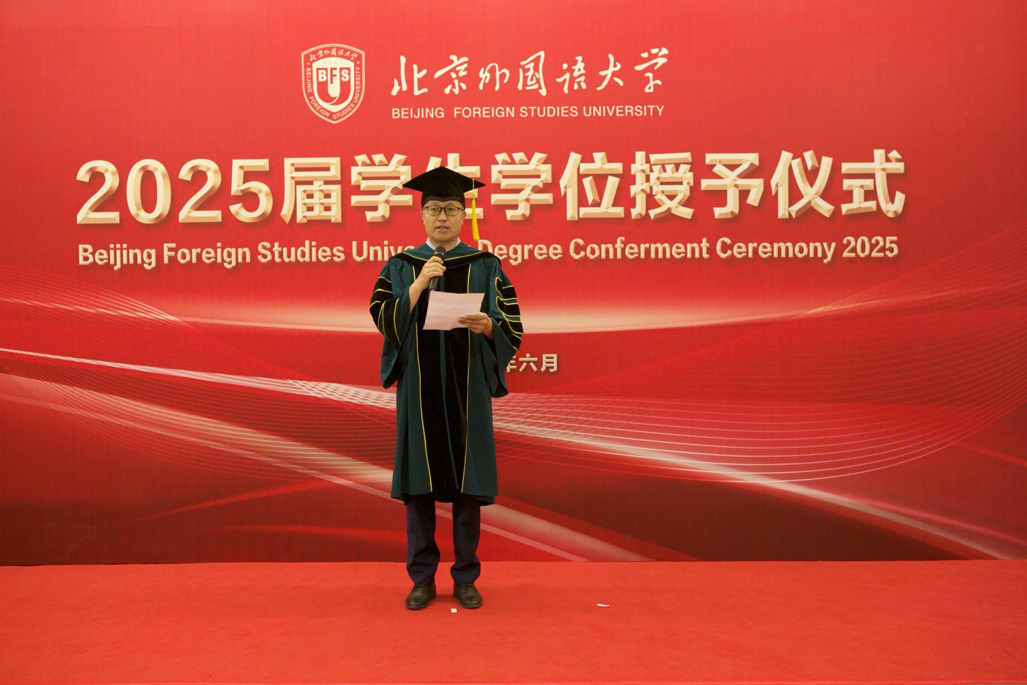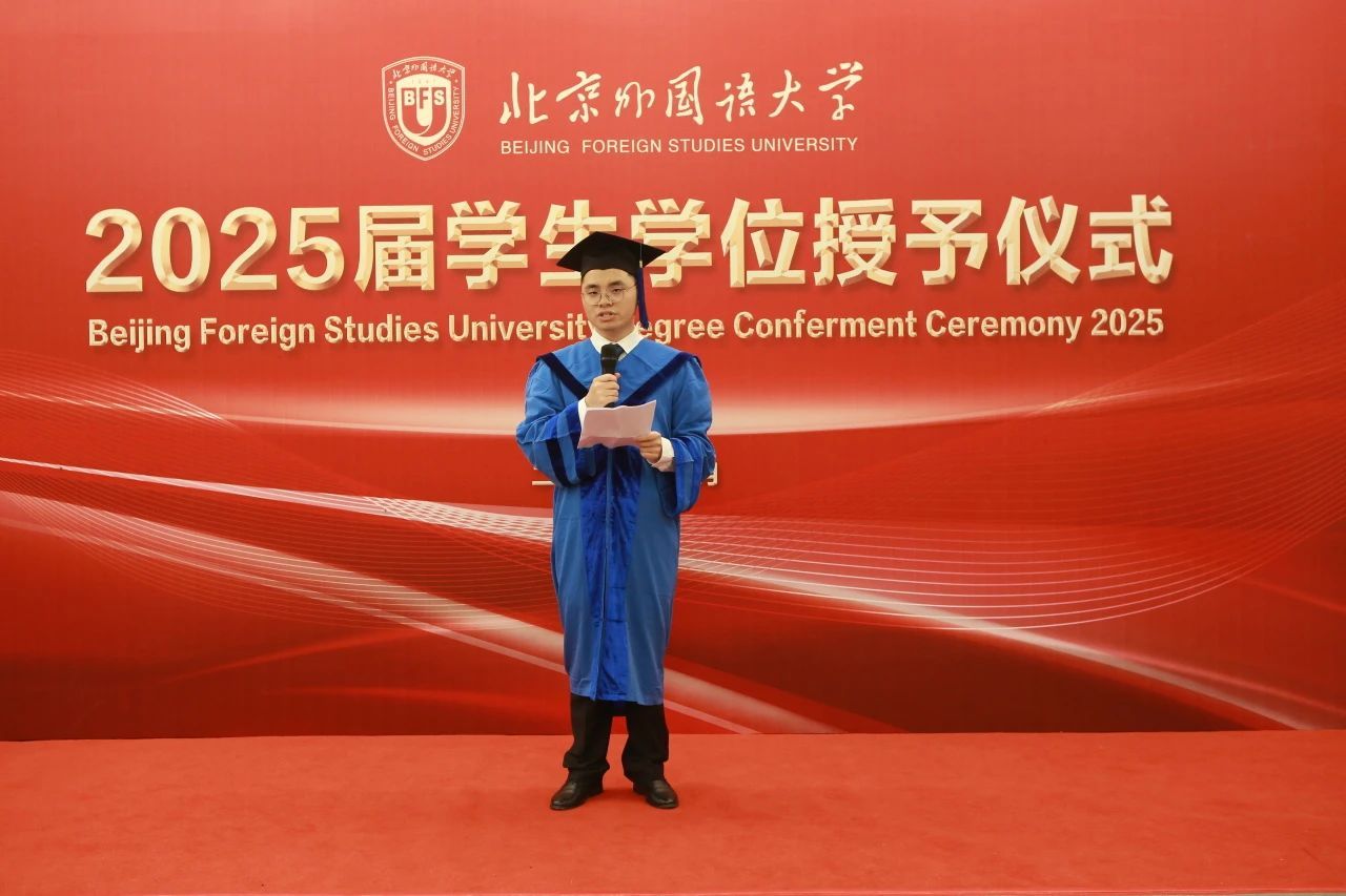 6月23日上午,买球官方网站于北外东校区晨读厅举办2025届毕业生学位授予仪式。买球官方网站院长、学位评定分委员会主席韩强、副院长孙磊,硕士研究生导师代表、2025届全体毕业生及家长代表参加了学位授予仪式。仪式由研究生教研室主任赫雪主持。