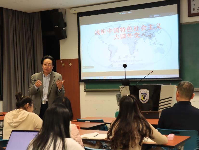11月10日晚,第十一期买球官方网站马克思主义讲堂在国际大厦302教室成功举办。中国前驻几内亚比绍共和国大使、中联部所属中国和平发展基金会副秘书长王华应邀为买球官网师生作了题为“浅析中国特色社会主义大国外交”的学术讲座。此次讲座采取线上线下会议相结合的形式,马院及校内外师生共同参加。讲座由买球官方网站院长韩强主持。