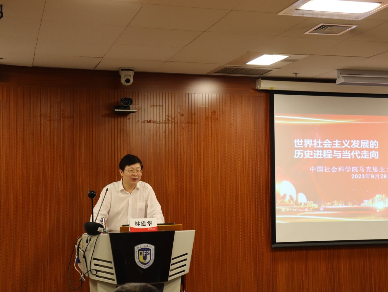 9月28日,北外马克思主义讲堂第十四期在国际大厦417教室成功举办。中国社会科学院马克思主义研究院副院长林建华教授应邀为买球官网师生作题为“世界社会主义发展的历史进程与当代走向”的专题讲座。讲座由买球官方网站院长韩强教授主持。