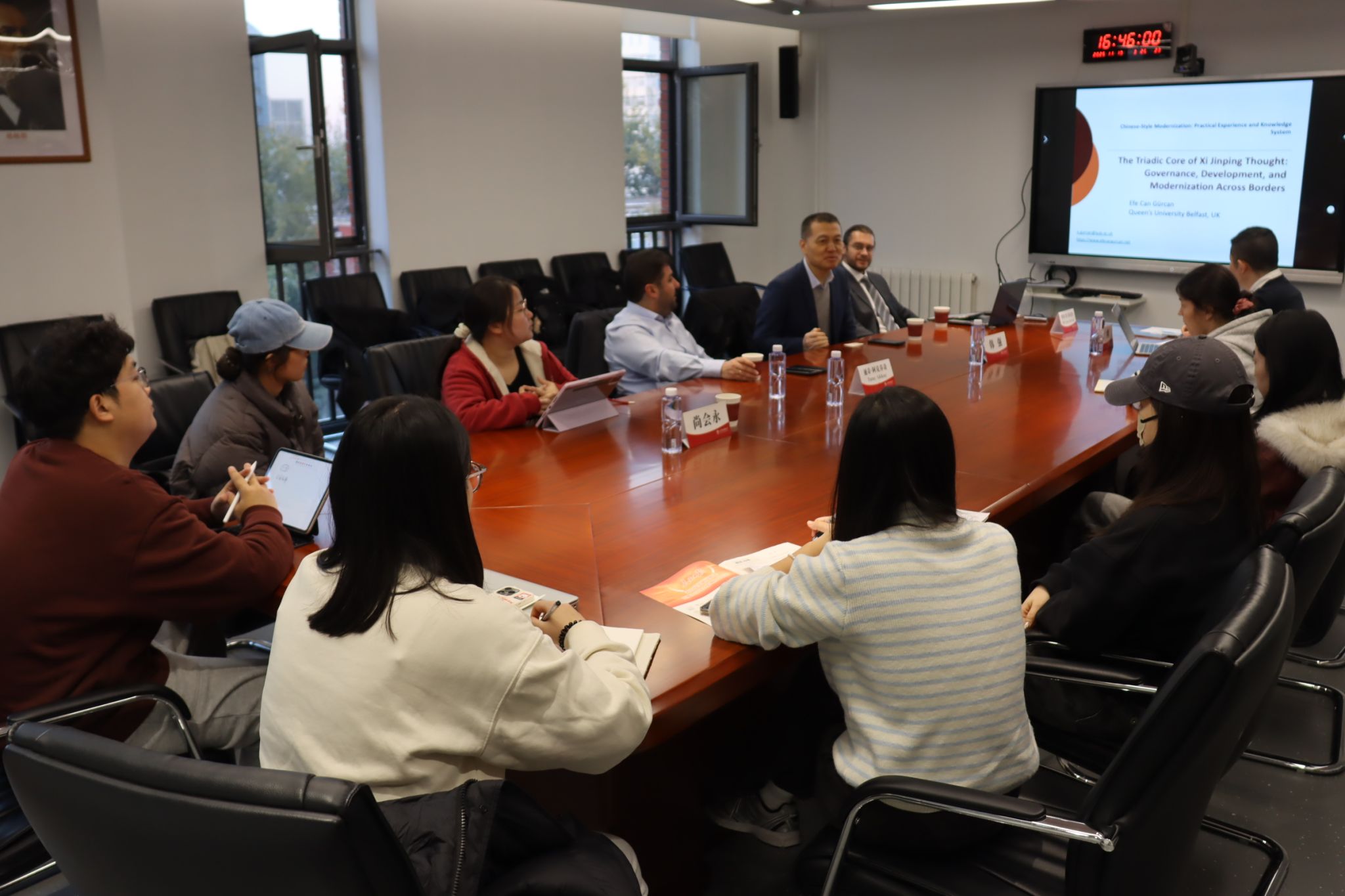 2025年11月19日,买球官方网站在608会议室举行学术沙龙,学术沙龙的主题为“习近平新时代中国特色社会主义思想的核心要义”。此次学术沙龙邀请了土耳其左翼学者、英国贝尔法斯特女王大学访问学者埃菲·詹·居尔詹(Efe Can Gürcan)博士和土耳其左翼媒体Harici网站创办人通奇·阿克乔奇(Tunç Akkoç)。买球官方网站院长韩强教授主持学术沙龙,买球官方网站教师梁爽担任学术翻译。