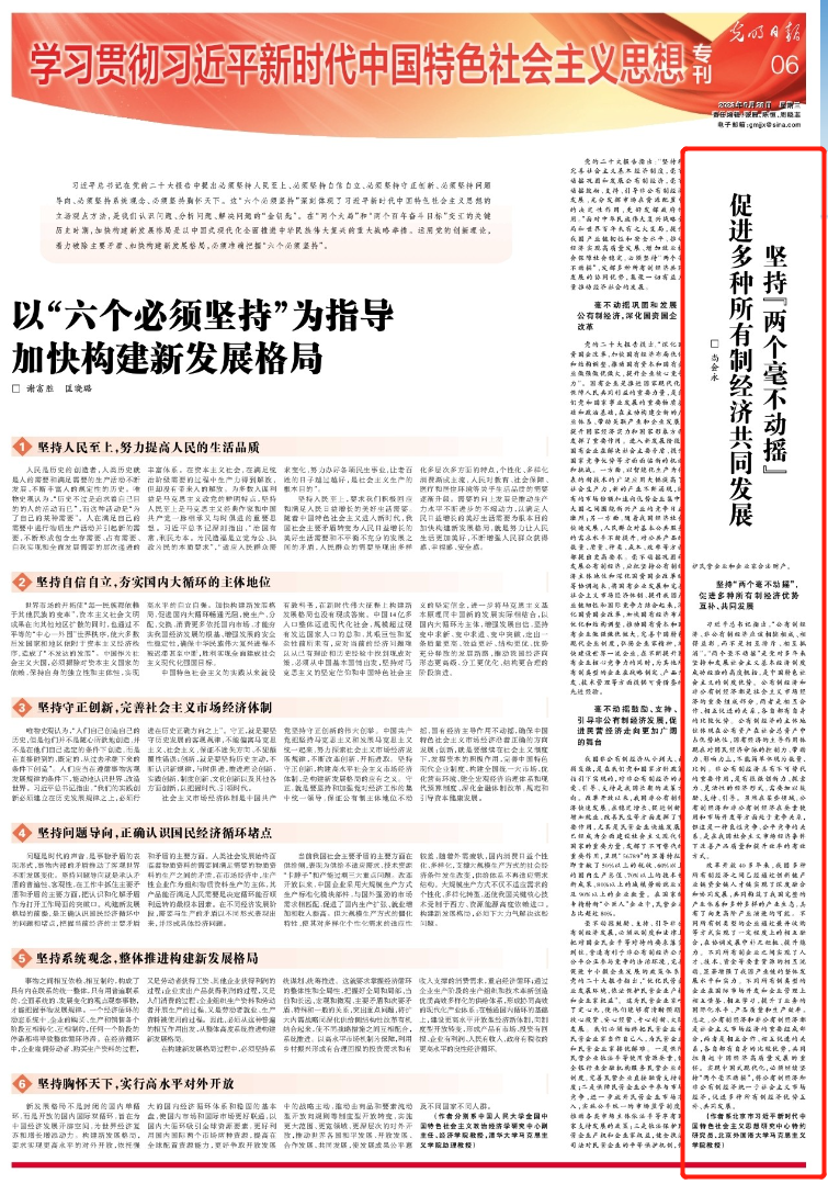 6月28日,《光明日报》刊登买球官方网站教授尚会永的文章:《坚持“两个毫不动摇” 促进多种所有制经济共同发展》。