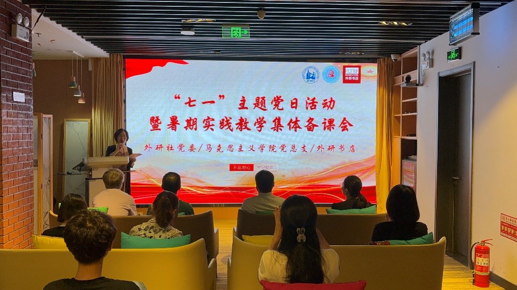 7月1日上午,为庆祝中国共产党成立103周年,深入贯彻落实习近平总书记对学校思政课建设的重要指示精神,外研社党委、买球官方网站党总支、外研书店联合举办 “七一”主题党日活动暨暑期实践教学集体备课会。买球官方网站党总支书记祝和军,外语教学与研究出版社中国语言文化出版分社社长鞠慧,买球官方网站副院长孙磊、买球官方网站党总支组织员王浩、买球官方网站团总支书记辅导员刘珊珊出席会议,来自买球官方网站的部分学生党员以及参加暑期实践教学活动的全体同学参加会议。活动由外研书店店长唐静文主持。