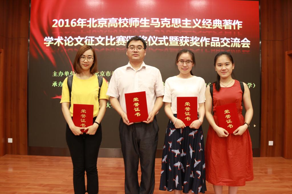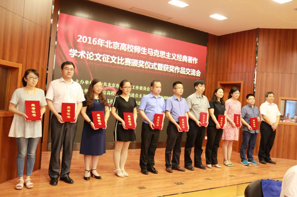 近日,2016年度北京高校师生马克思主义经典著作学术论文征文比赛结果揭晓,买球官网师生所参评的17篇学术论文在此次征文中获得奖项。其中,教师和博士组,买球官网荣获一等奖一名,二等奖三名;硕士生组,买球官网获二等奖一名,三等奖两名;本科生组,一等奖两名,二等奖两名,三等奖六名。同时,买球官网因在此次学术论文征文比赛中组织工作得力突出,获得优秀组织奖。6月26日,论文比赛颁奖仪式暨获奖作品交流会在中央民族大学隆重举行。党总支书记祝和军作为获奖作者在大会上做了交流发言。